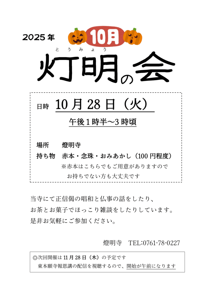 来月の灯明の会は11/28(金)9時からです