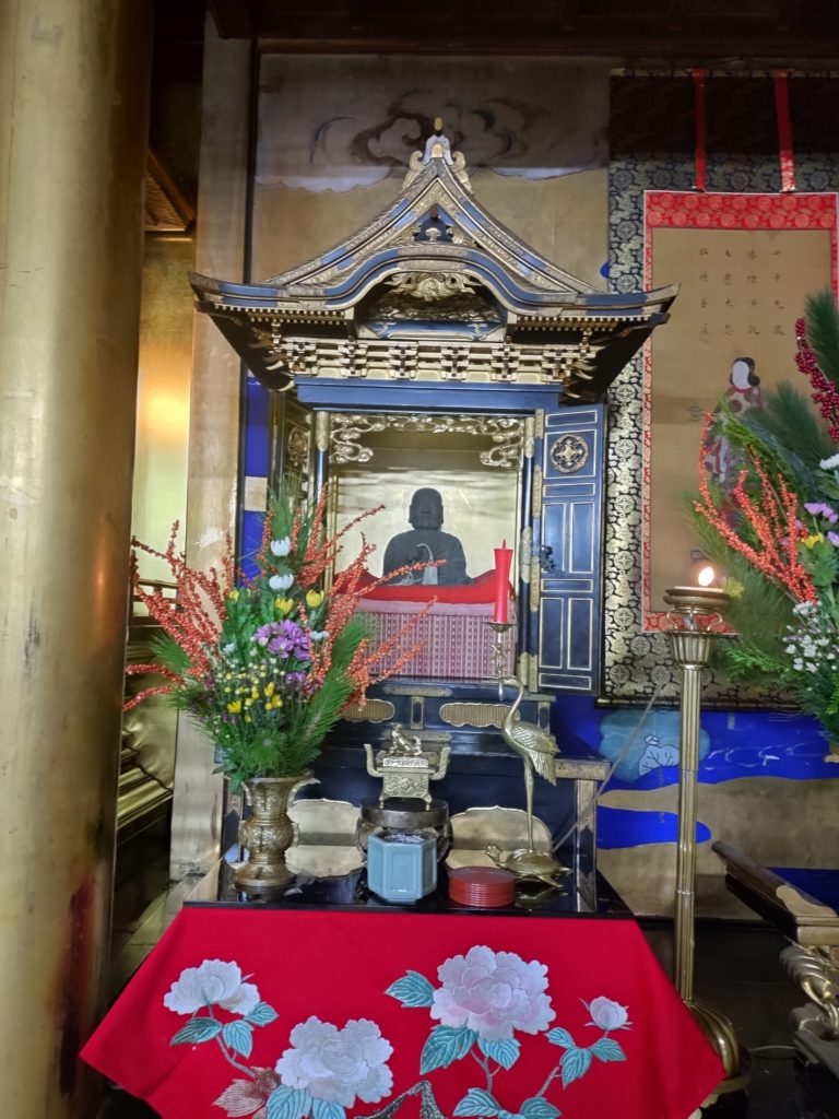 ちなみに、例年だと春の蓮如上人御忌法要の日の一日だけ御開帳になる、上人の手彫りといわれている御木像の厨子も、今回に合わせて御開帳していました