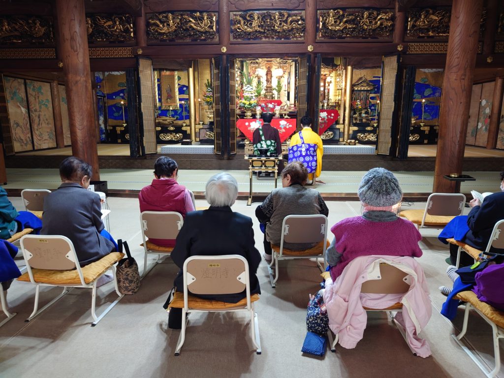 当寺への到着は10:10を予定していて、到着後は勤行と短い法話があがります