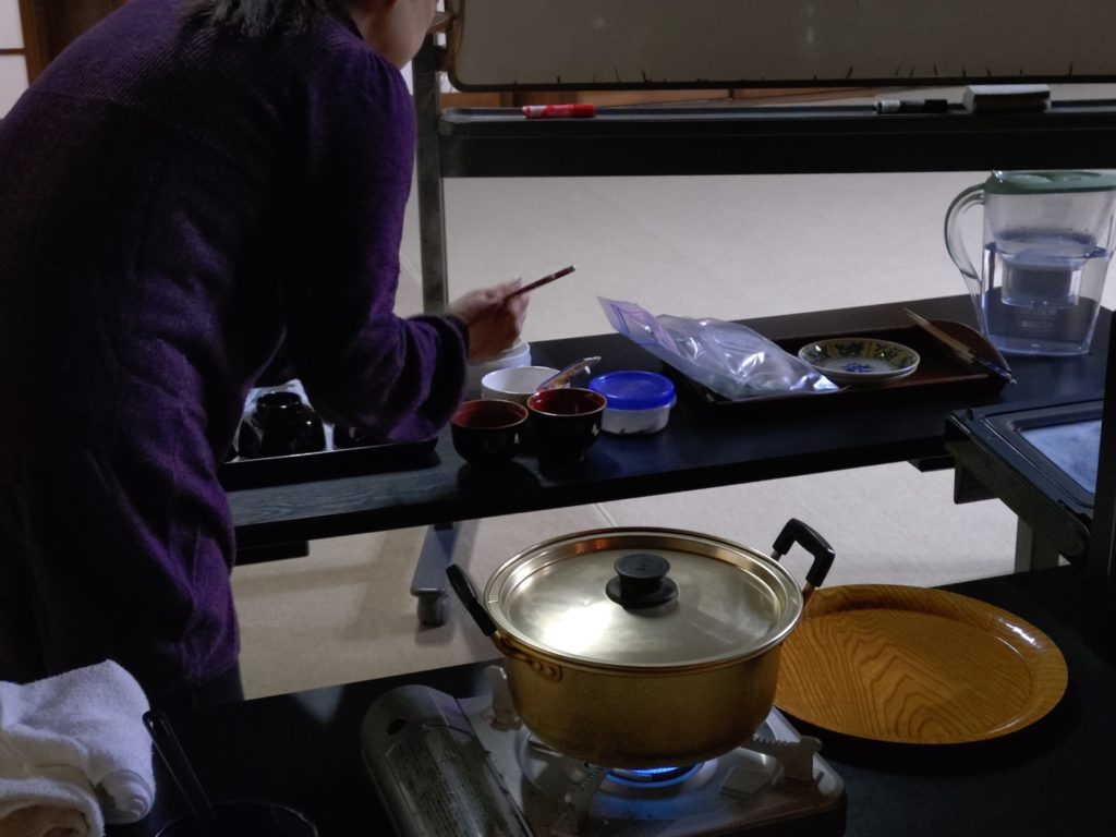 お勤めの後は皆さんでぜんざいをいただきます