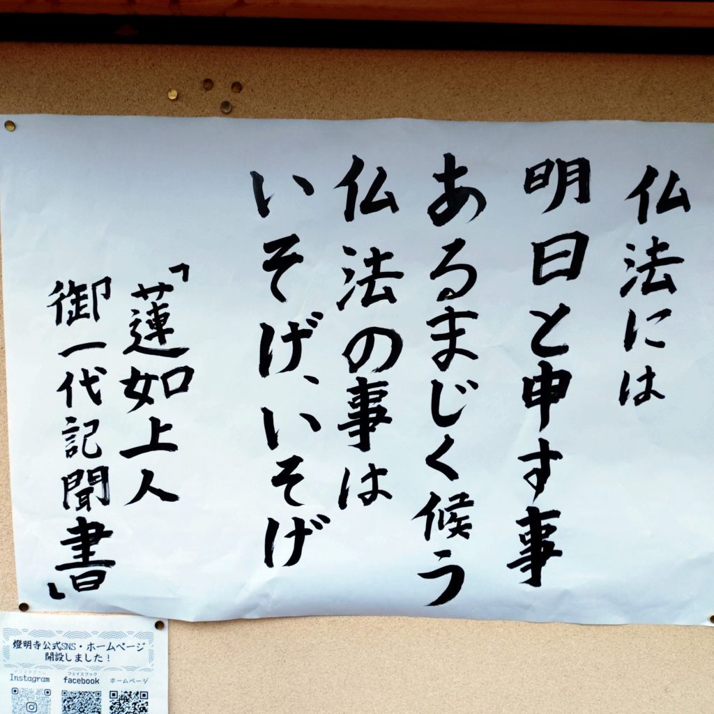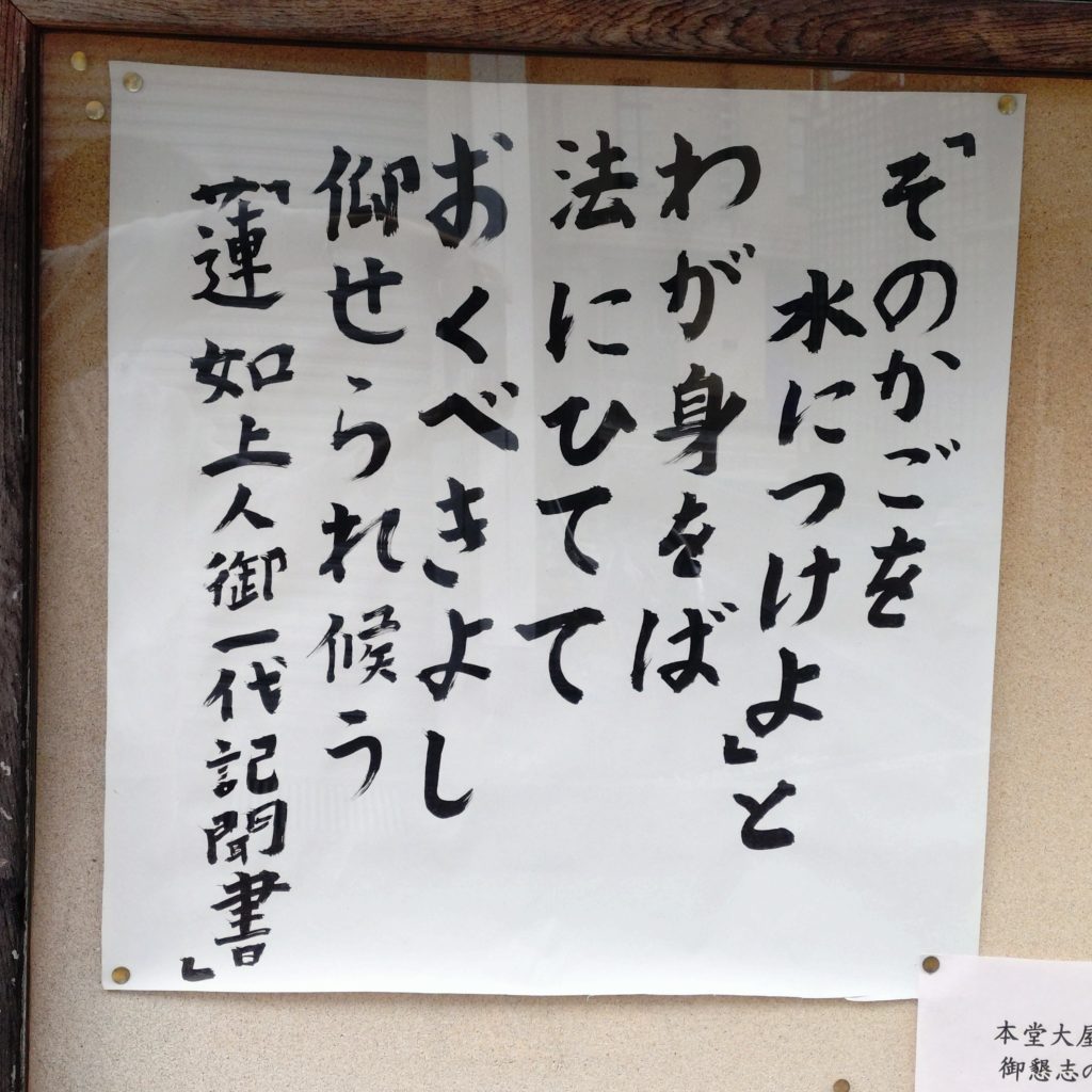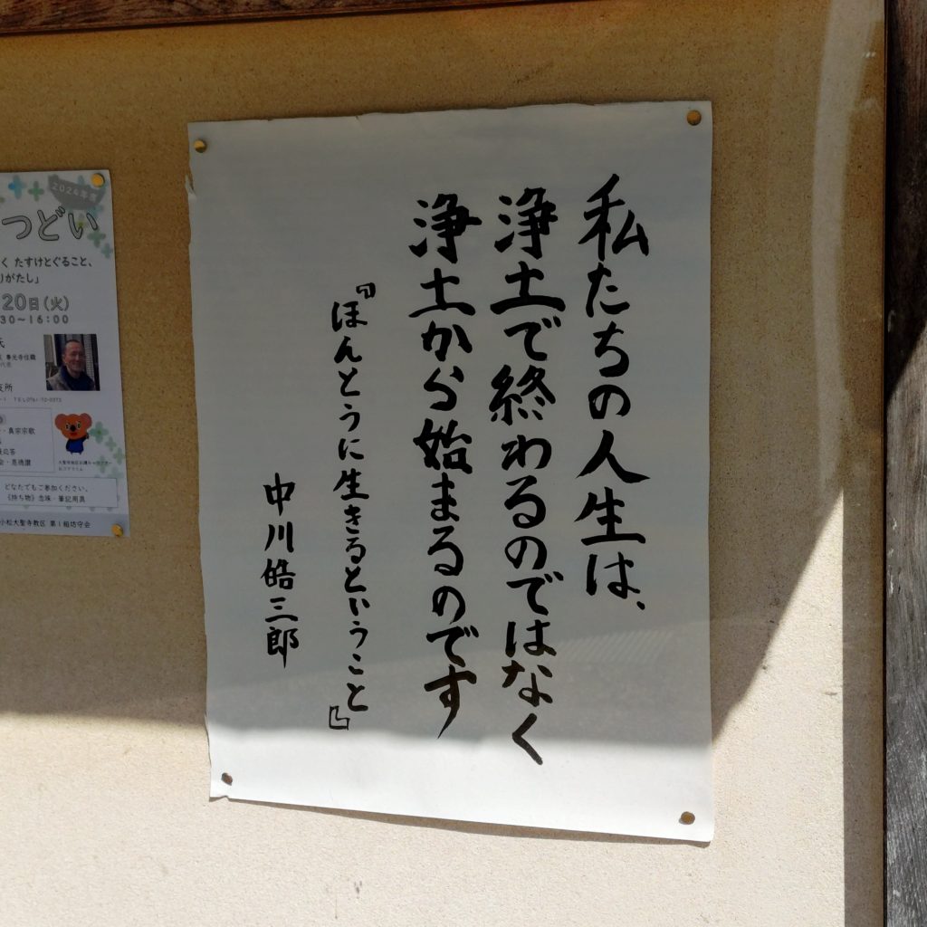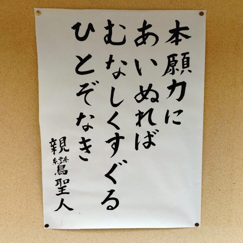 先日の永代祠堂経法要のとき、掲示板を写真に撮った紙を拡大コピーして、若坊守の一口法話と題しましてこの短歌を紹介しました