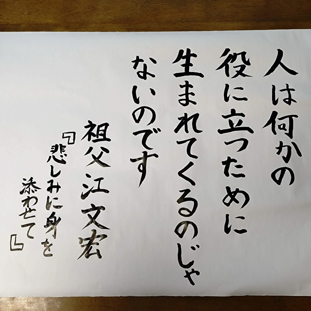 上手ではない字なので恥ずかしいのですが、心に残った言葉というものはぜひ大切にしていただきたいと思います