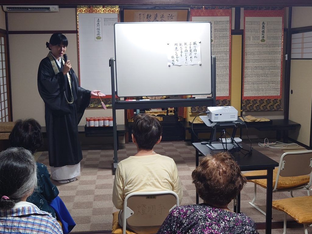 8月の灯明の会を行いました。今回は住職が急遽参加できなくなってしまったので、若院と若坊守の2人で取り仕切りました。