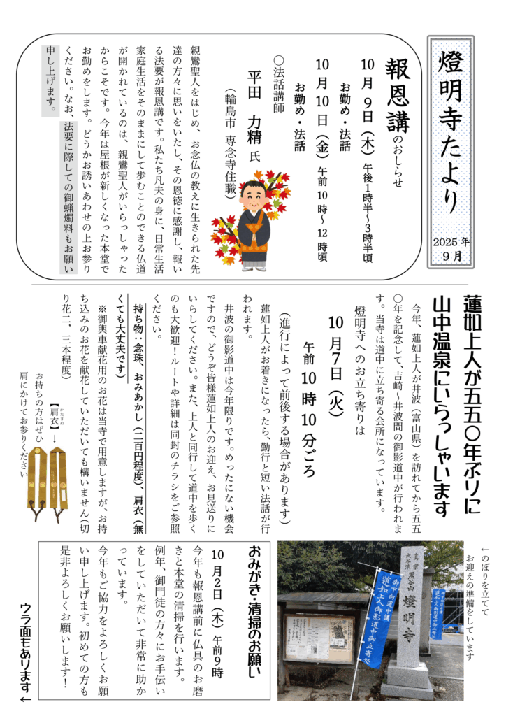 ともあれ!今年の秋は報恩講に加えて蓮如上人御影道中のお立ち寄りもございます!